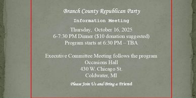 MAKE A CONTRIBUTION TODAY TO SUPPORT THE BRANCH COUNTY REPUBLICAN PARTY. HELP US WIN ON ELECTION DAY