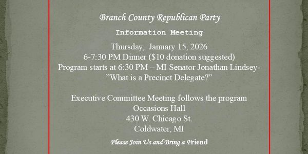 The Branch County Republican Party is affiliated with the Michigan Republican Party. More information on the state party can be found on the website: https://michiganrepublicanparty.com/. Use the link below to jump to that website.